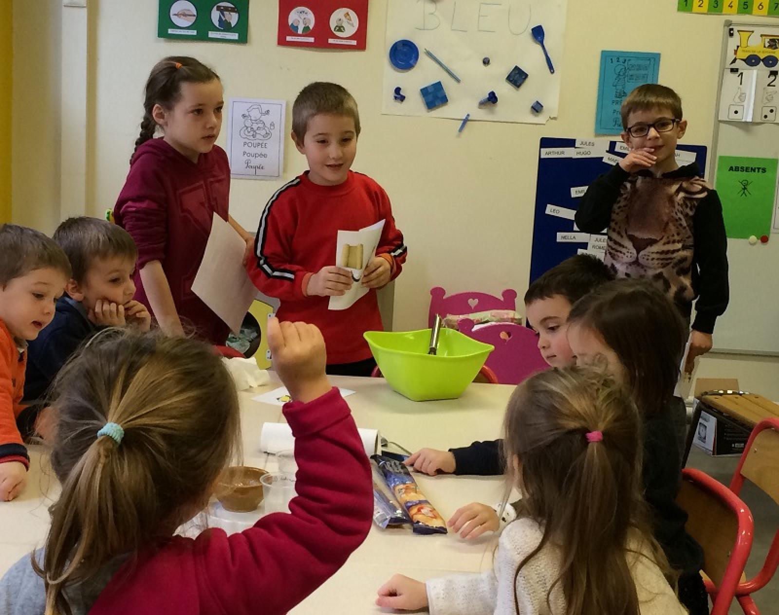 Ainsi, jeudi matin, ils ont pu endosser le rôle des maîtresses pour expliquer la recette (avec "de jolies phrases », en articulant et en utilisant les bons mots) et aider leurs camarades à les réaliser.