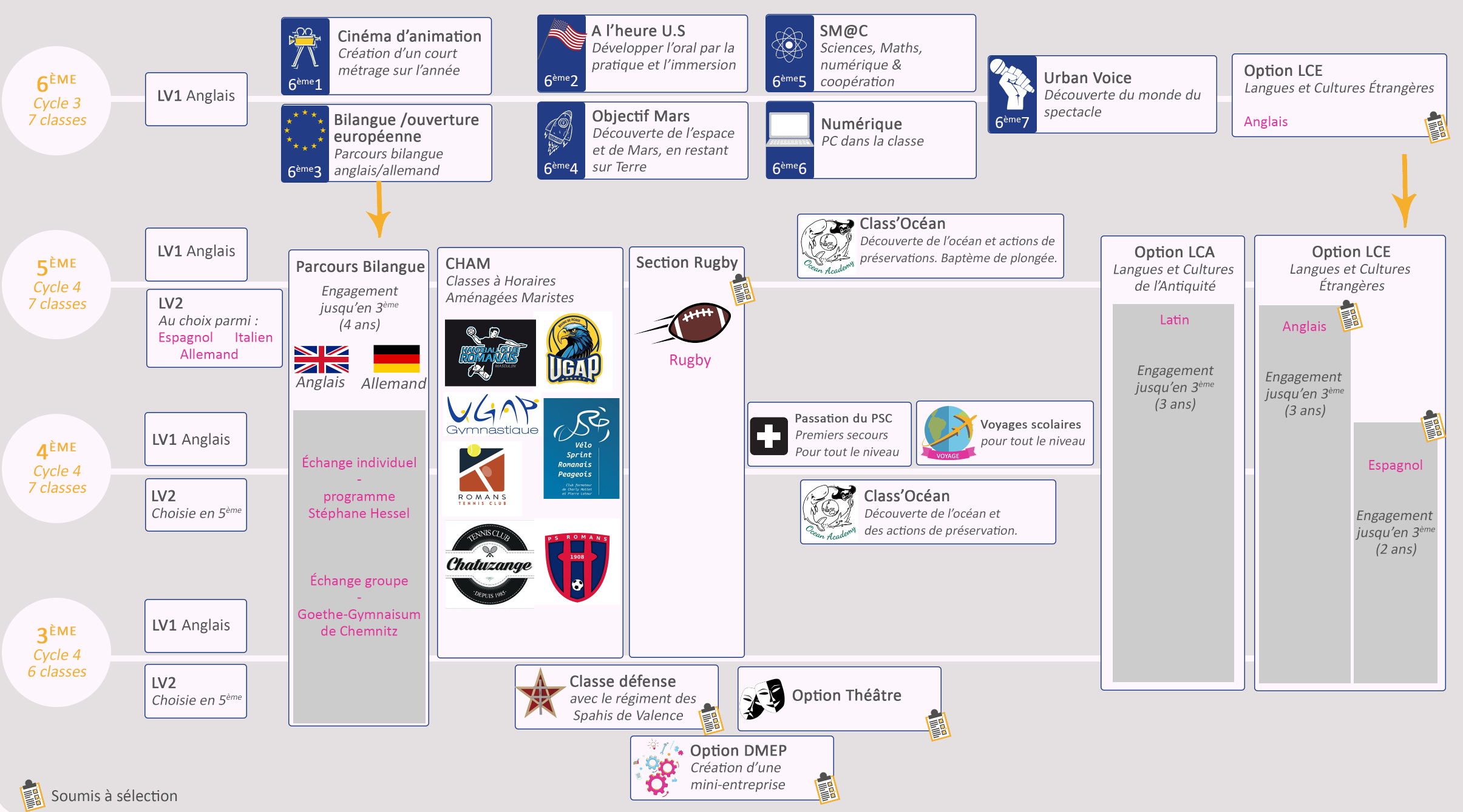 Les autres options et classes à thème au collège
